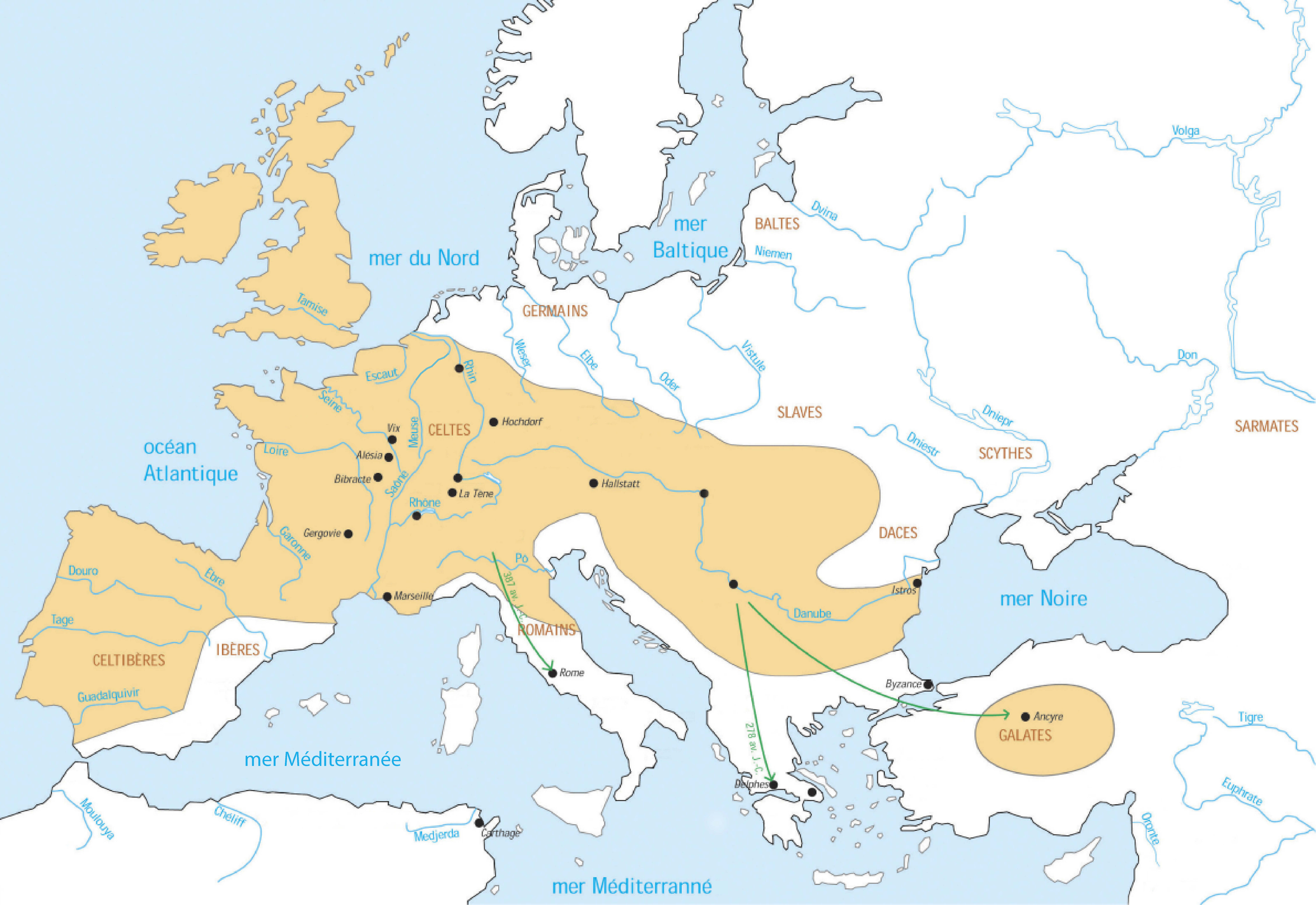 Aux alentours du VIIIe siècle av. J.-C, l’arrivée de la métallurgie du fer, marque le début de l’apogée de cette civilisation celtique. Les Celtes migrent, principalement vers l’ouest de l’Europe, durant la période dite « de la Tène » (entre 450 av. J.-C. et 25 av. J.-C.). L’expansion celtique est à son maximum en 275 av. J.-C., – son territoire s’étend de la Mer Noire à l’Europe de l’Ouest – , et elle prend fin avec la conquête romaine.